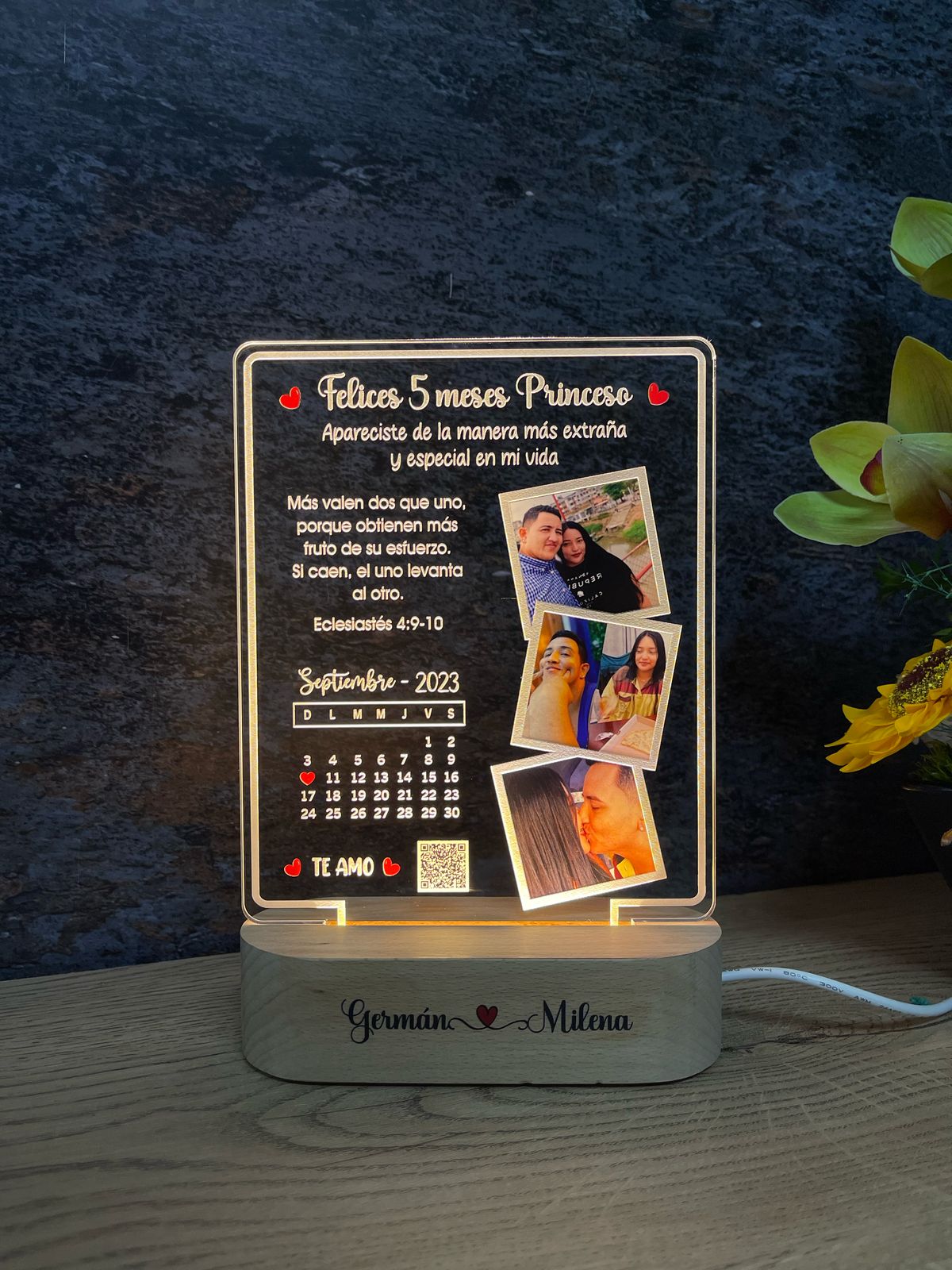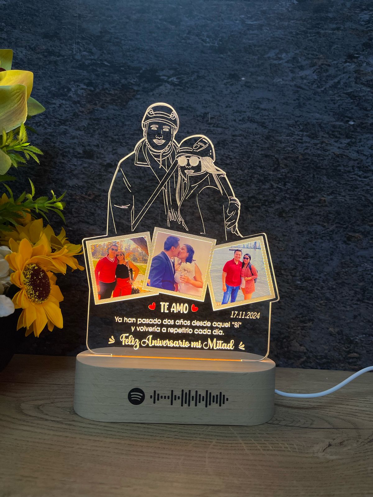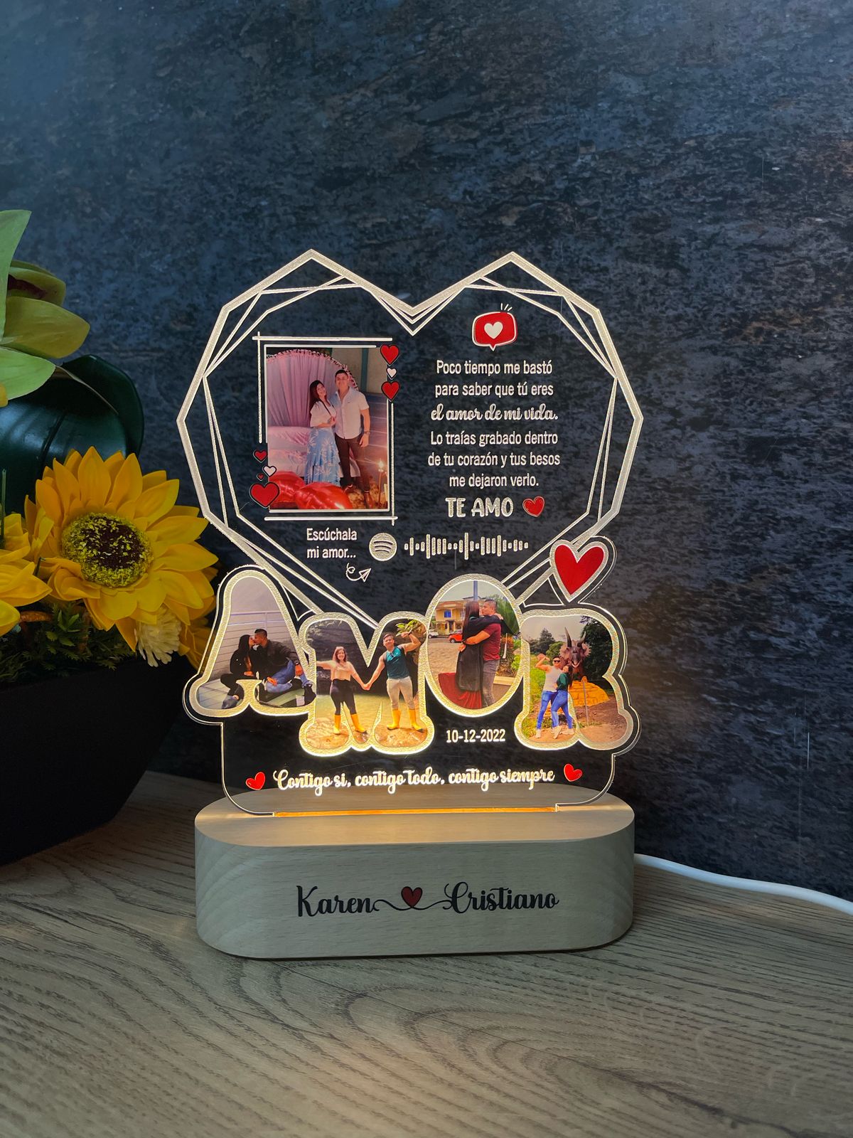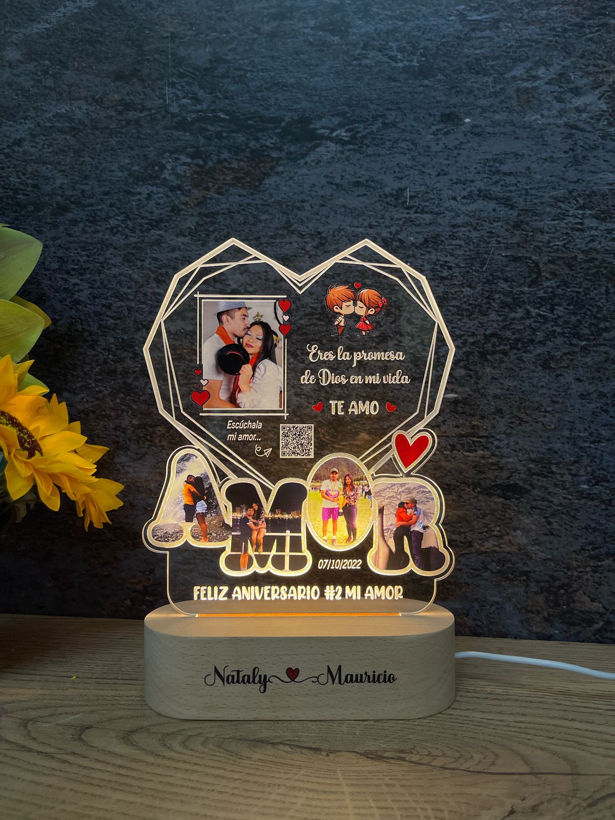 🥰 El cuadro es decorativo, no reproduce música. Podemos incluir un código QR o Spotify para escanear y reproducir la música en su teléfono.